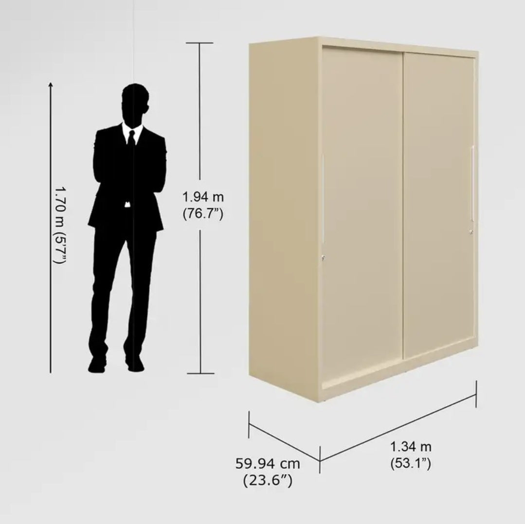 Designed for space efficiency, it features smooth sliding doors that glide effortlessly without needing extra clearance, making it ideal for compact rooms. Inside, multiple spacious shelves and thoughtfully arranged compartments help you store clothes neatly and accessibly.