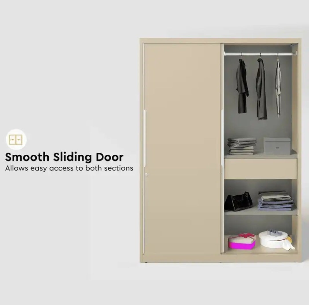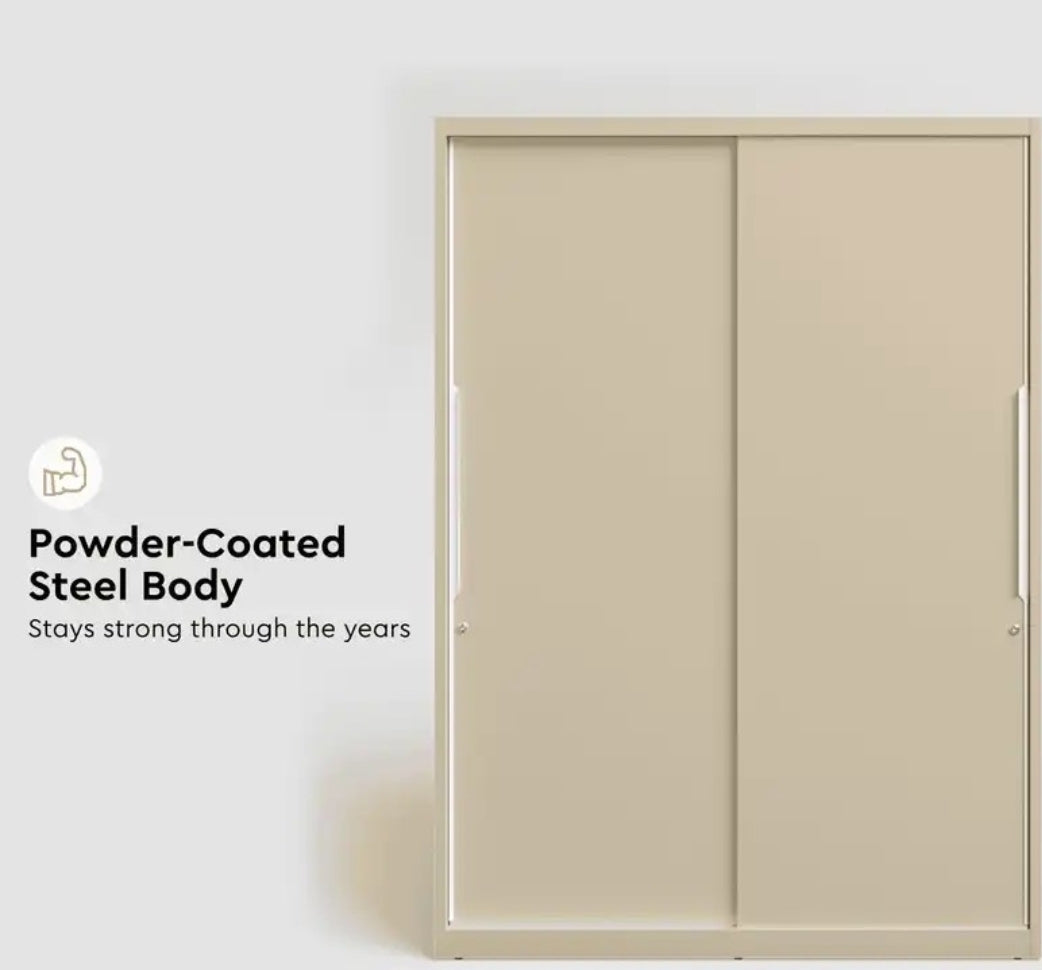 Godrej Interio Slide N Store Pro Plus 2-Door Steel Wardrobe (Textured Oatmeal), 1-Year Warranty, 2 Drawer