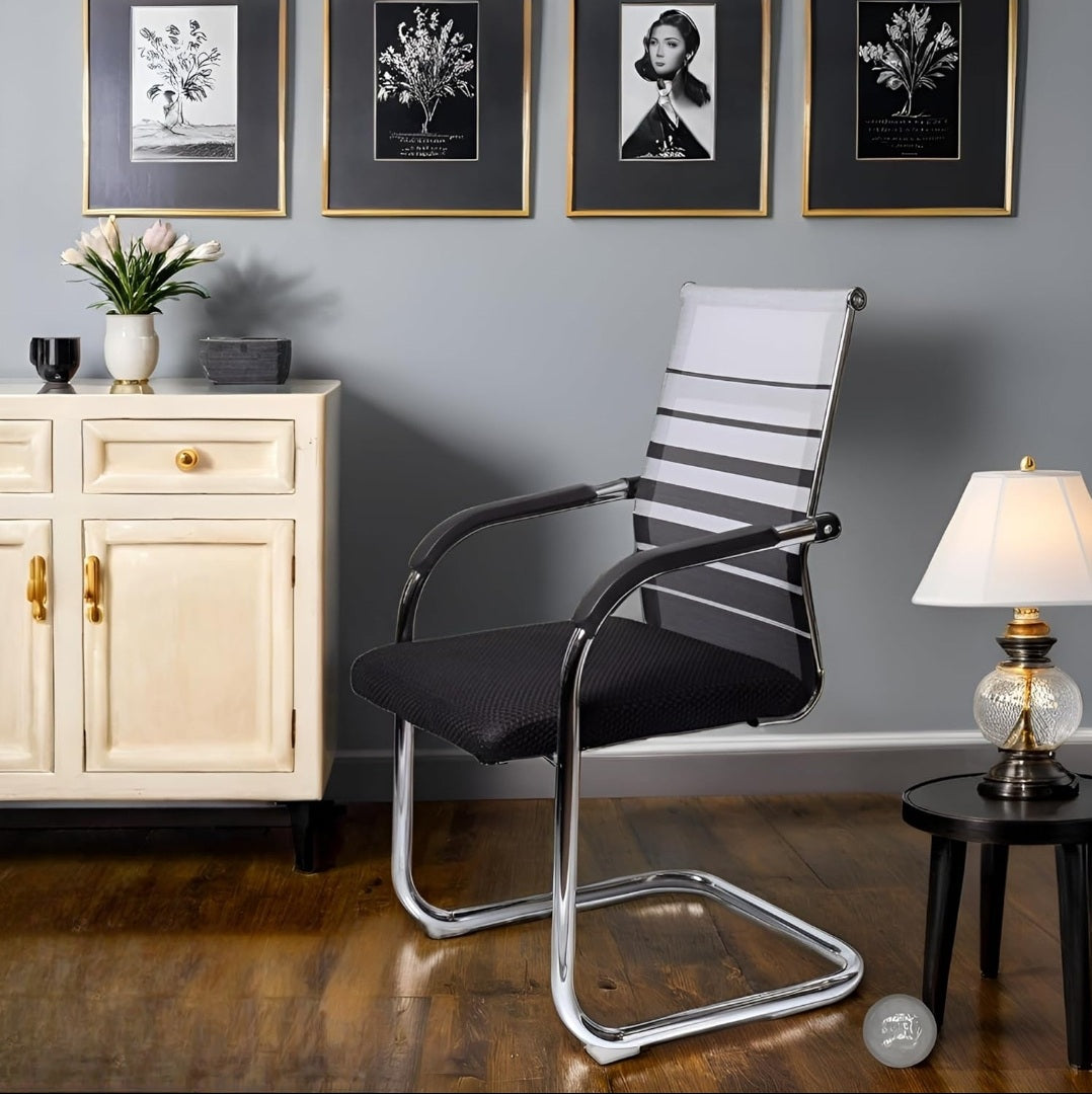 Crafted with a sturdy chrome steel frame and a soft cushioned seat, the chair provides both reliability and relaxation. The back handlebar makes it easy to move around, while the sleek white & black finish enhances any modern office or study setting.